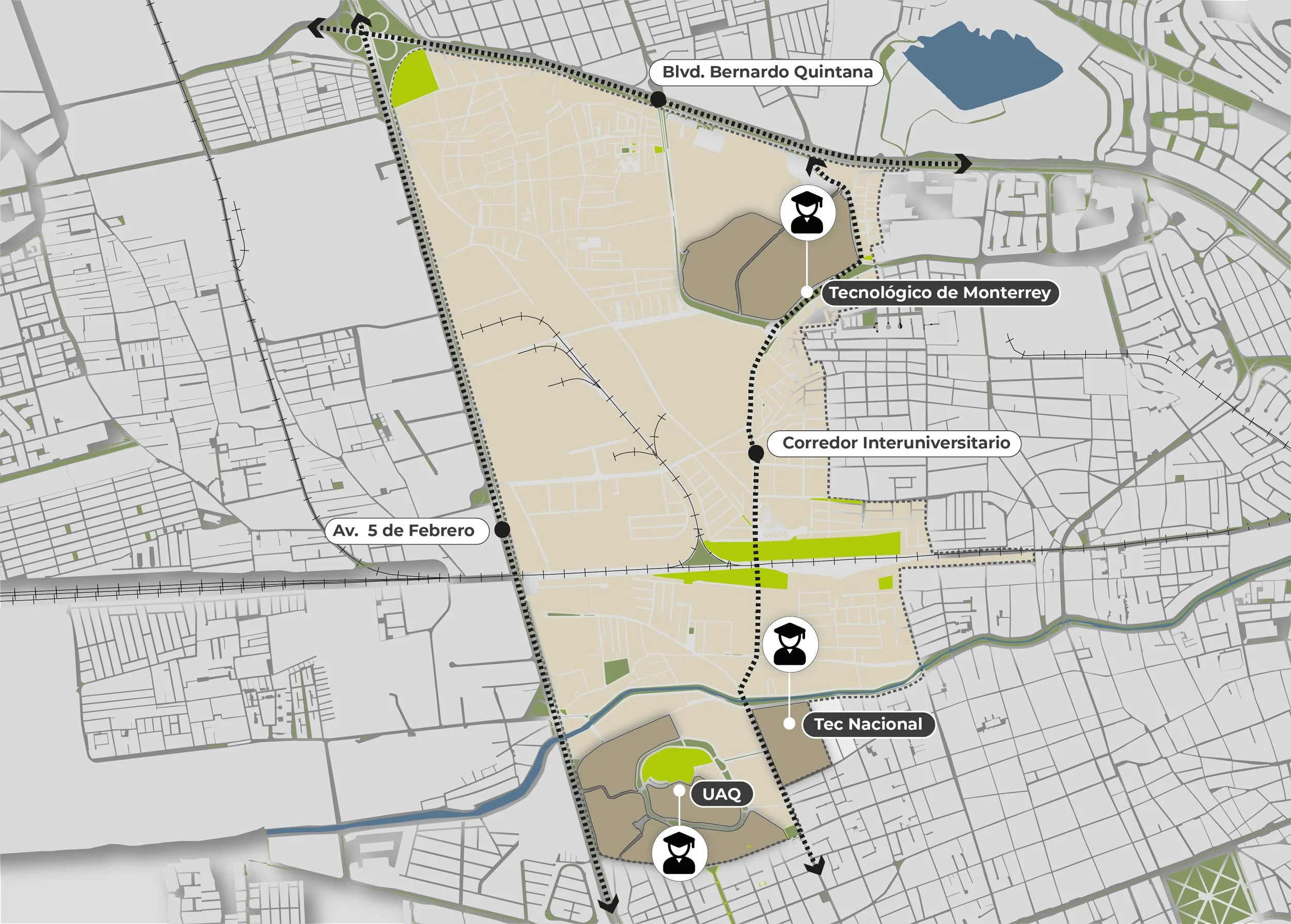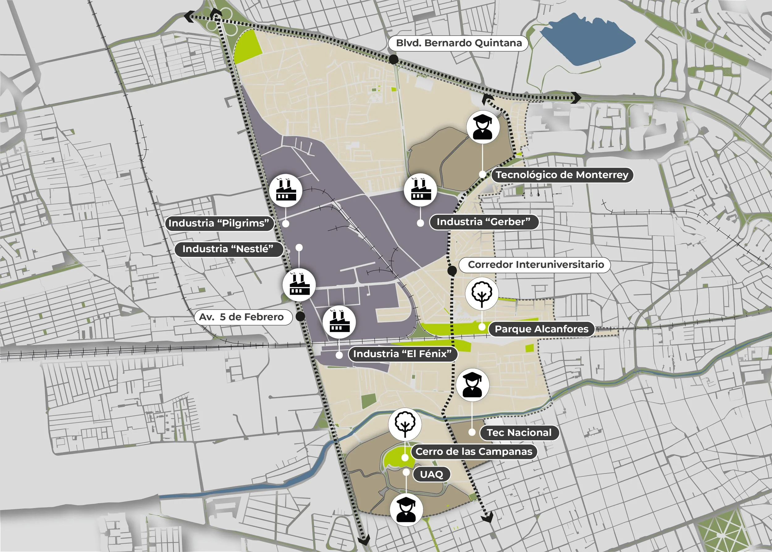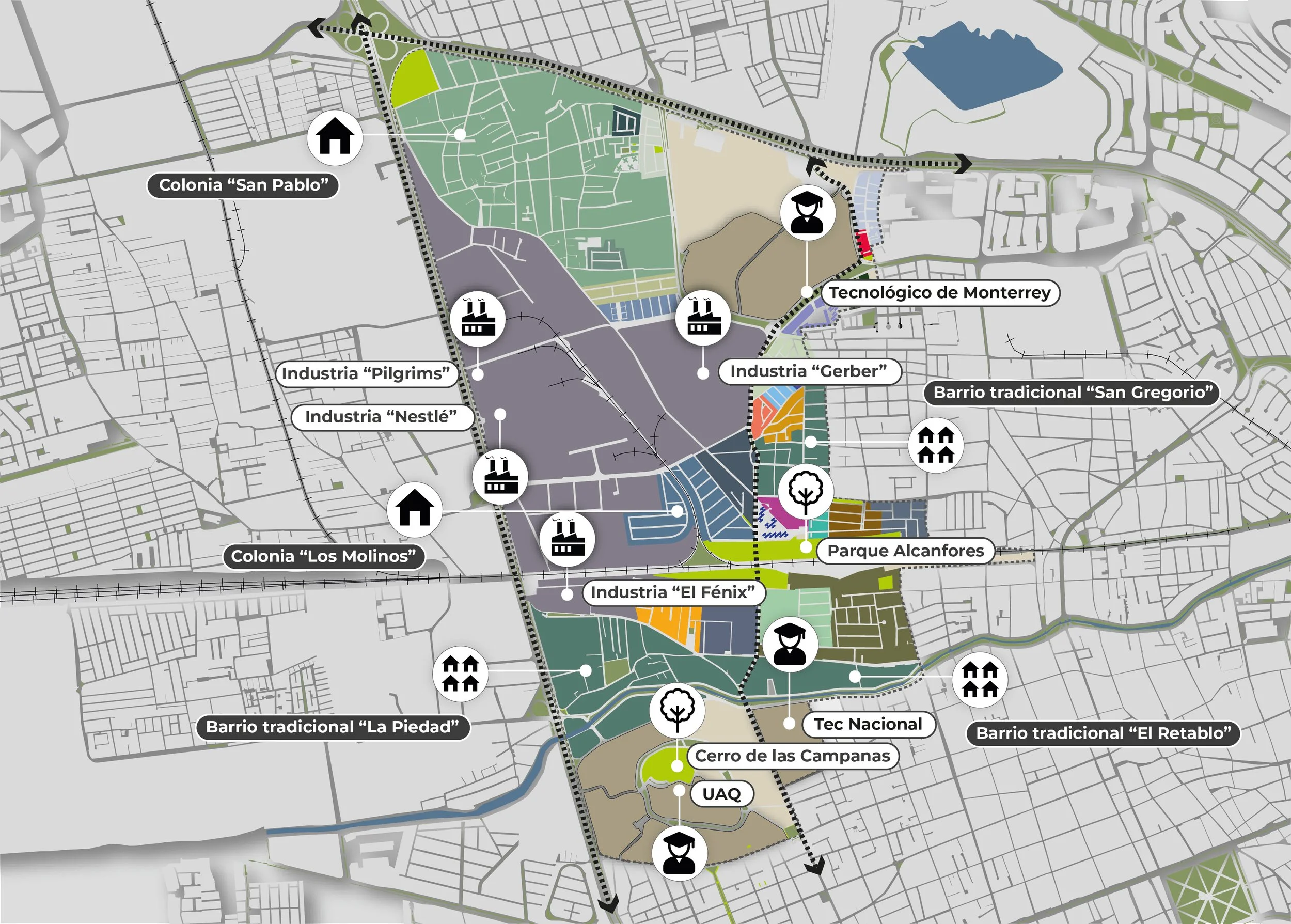 distritoQRO es una zona que junto con la riqueza patrimonial, identitaria y comunitaria de los barrios tradicionales y colonias, ofrece una base sólida para forjar un ecosistema urbano único, donde el conocimiento, la creatividad y la innovación se conectan con el tejido social y cultural preexistente.